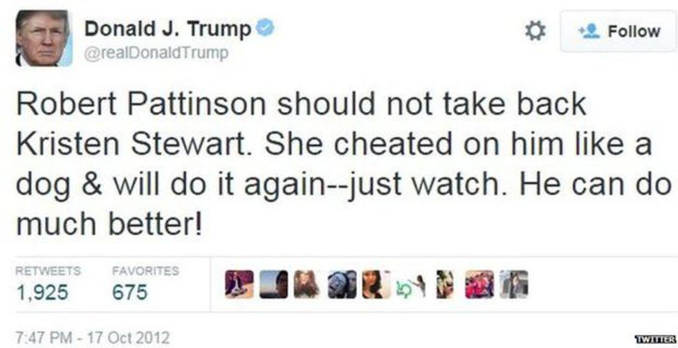 OK, so this isn't from the election, it's actually from 2012, but I still think it's hilarious. Robert Pattinson can do much better!
