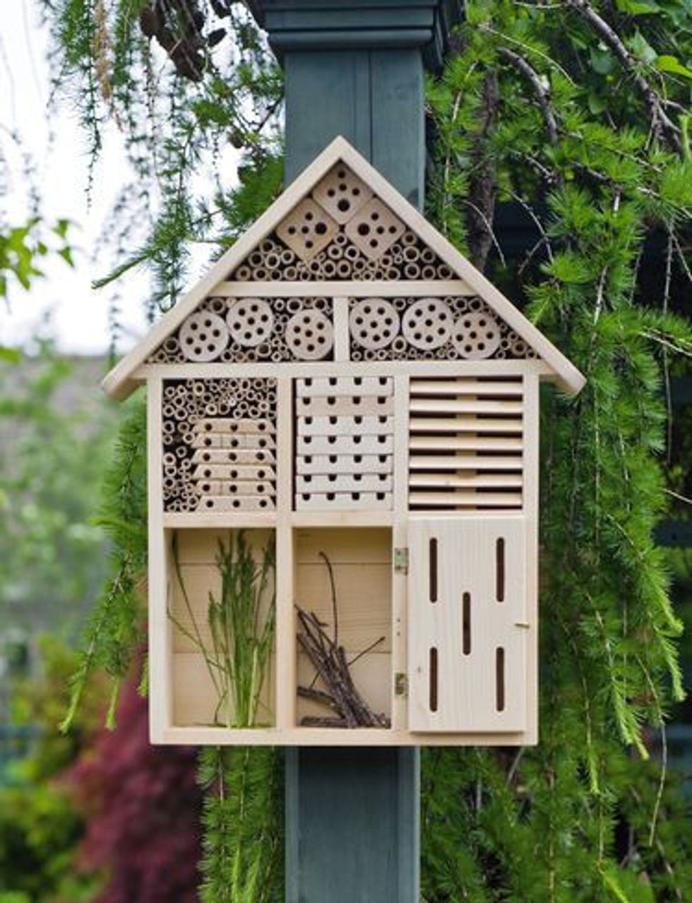In order to encourage bees to pollinate more, provide a house for them! I mean, it's the least we can do, considering all that they do for us. You can find bee houses anywhere online (amazon.com is a great place to start) or any home & garden store!