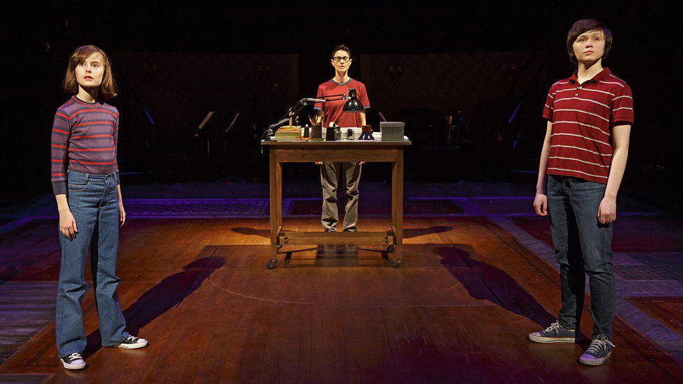 Sydney Lucas, Beth Malone, and Emily Skeggs as Small Alison, Alison, and Medium Alison in Fun Home.