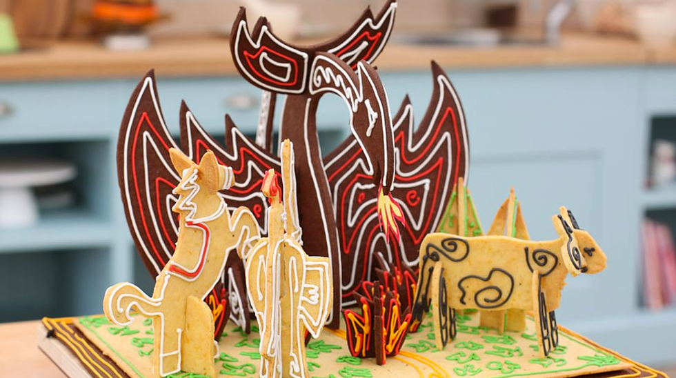 Seriously -- this ridiculously cool dragon is made entirely out of cookies. That's a villainous creature I can get behind. Especially since he can be demolished with a glass of milk and an empty stomach.