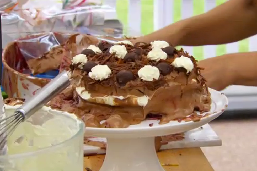 Even when bakes don't work out, they still look delicious. I present to you exhibit A: Dorret's collapsed cake. Her mousse didn't set in time, which obviously wasn't great and she was crying and everybody felt really bad. But look at this cake: