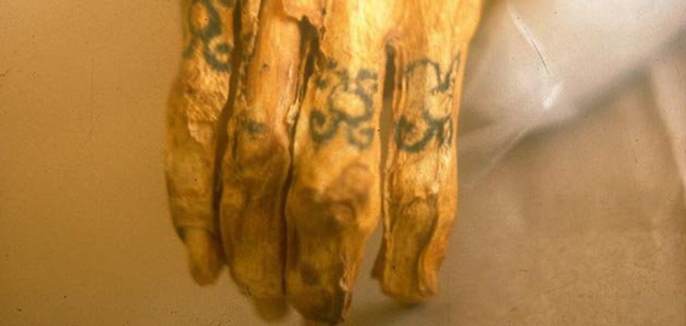 (Above picture is of a tattooed right hand of a mummy. Credit to Smithsonian.com)