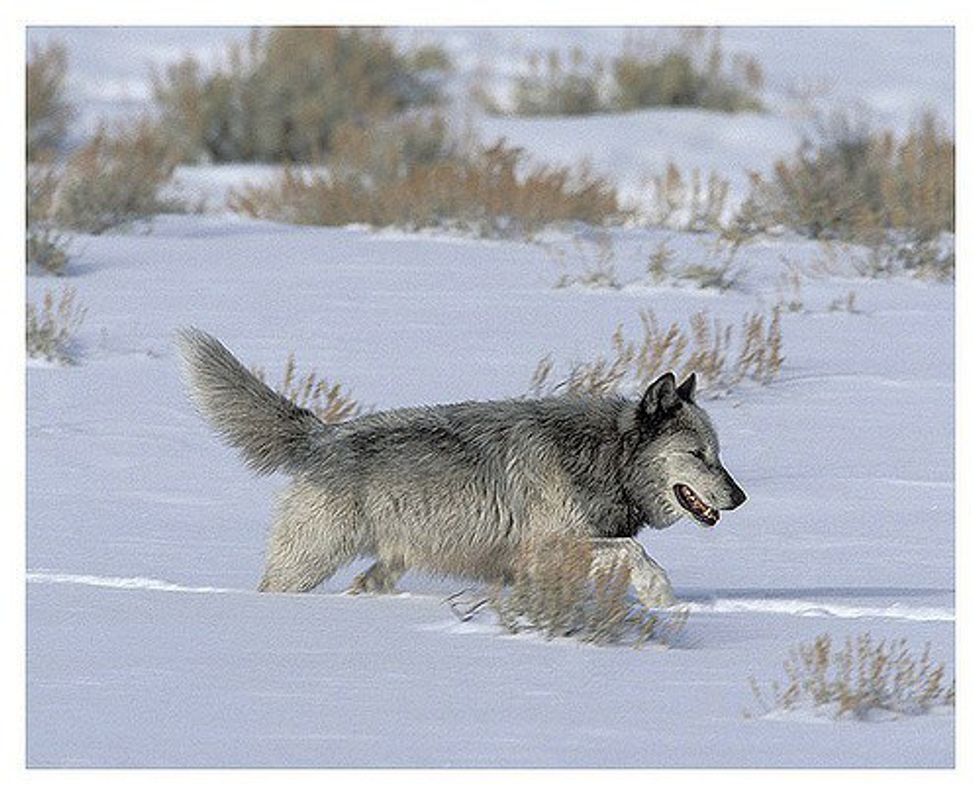 A day came where sixteen Mollie’s pack members (a powerhouse, bison-hunting pack) came into the Lamar’s territory, heading straight for the den that housed pups. They disappeared into the trees, and before long seventeen wolves shot out of the forest, Oh-six in front, the sixteen Mollie’s right on her tail. She was leading them away from the den. A good distance lay between them, but it was closing fast, and coming up in front of them was a high, steep cliff. Her time was running out. She had to think fast.