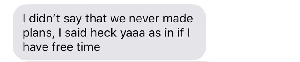 The next day I assumed we had something planned, so I texted him asking if he wanted to come over when I got back from lunch with a friend and he replied by saying he had a lot of work to do instead. I noticed he was flaking on me and said, "I mean you said yesterday that you wanted to hang out." This is what he replied to me with: