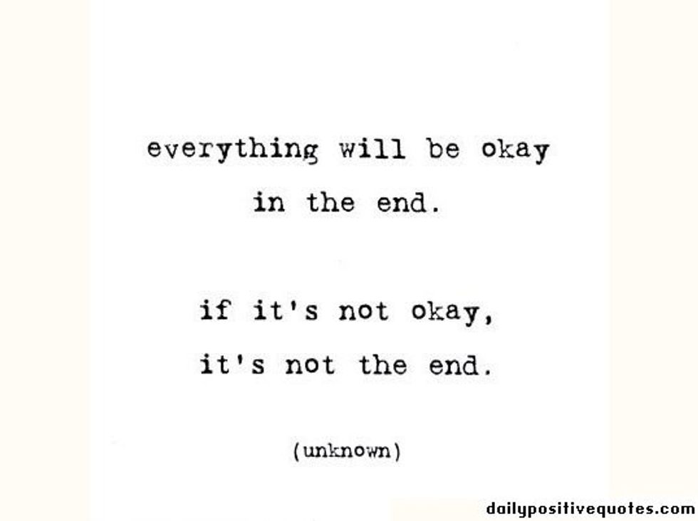 There is always a light at the end of the tunnel. A pot of gold at the end of the rainbow. Never stop reaching for your dreams. No one should tell you that you cannot do something. If they do, they don't need to be a part of your life. However, you can't go through life along. You can't be an all star and claim you can handle everything. It is okay to get help when you need it. It is okay to cry on someone's shoulder when you need to. It doesn't show weakness, it shows that you are not afraid to seek out help.