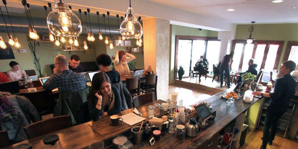 One shot is a two story restaurant that features New American dishes with a hint of international flavor and those class favorites. Downstairs you can see industrial antiques and furniture by local artisans while the upstairs has a little library and transforms into a live music venue! Favorites include: Pumpkin explosion bagel, vegan donuts, the grilled mozzarella pesto and tomato baguette, and their amazing coffees and espressos.