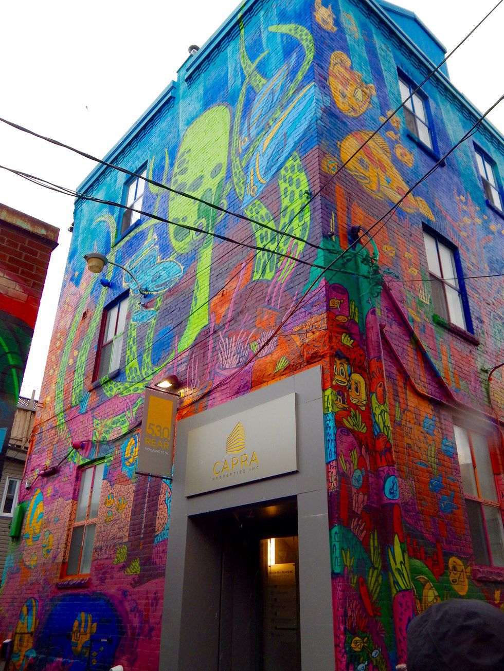 Every city has itās hidden treasures that really captures the spirit of the locals. In a recent visit to Toronto, I discovered Graffiti Alley; a small backstreet abundant with art from locals whose cumulative work transformed an otherwise unscrupulous alley into a vibrant attraction. Located a block south of Queen Street West between Portland Street and Spadina Avenue, the hidden nook of Graffiti Alley has a special charm that truly inspires creativity into those who traipse through it.