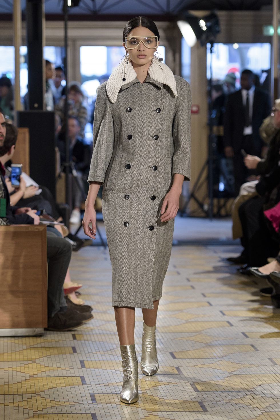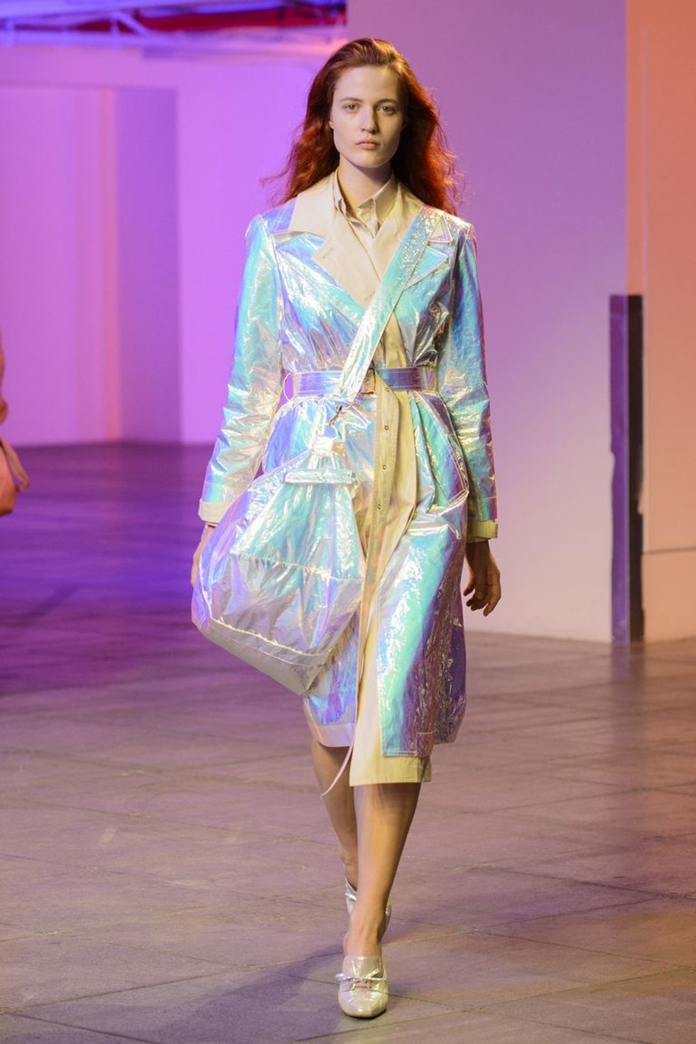 Transparent plastic and iridescent fabrics and holograms bring a sci fi feel to fall.