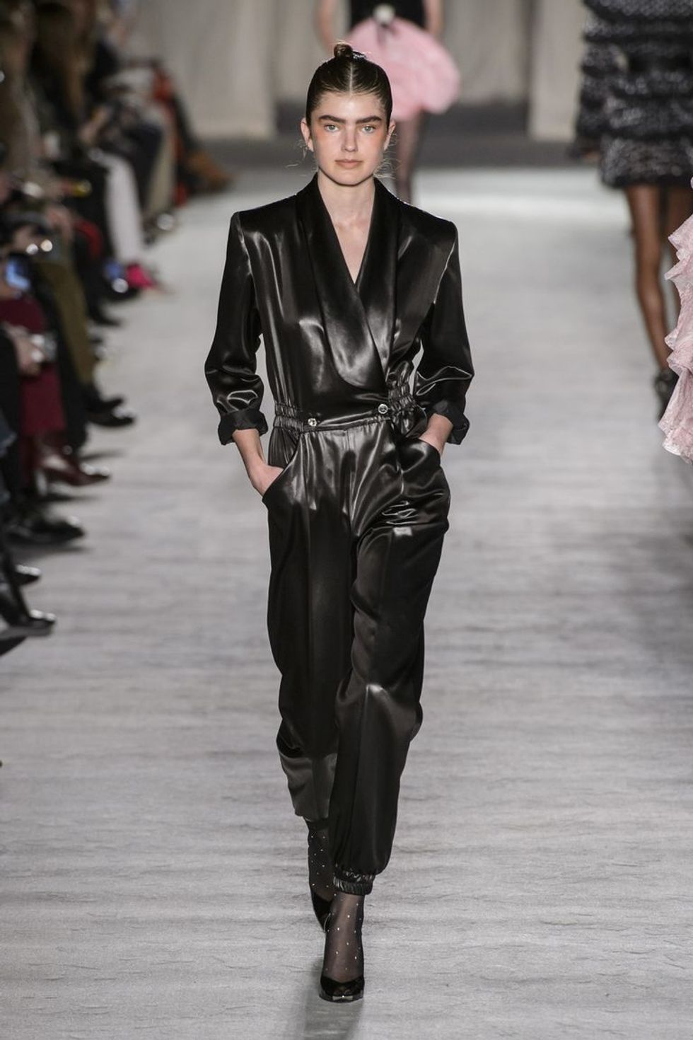 Bold shoulders and black leather, using a womanly silhouette with these to show the ultimate power move.