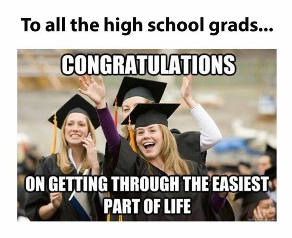 This meme is diminishing the success of high school graduates. Excuse me, but when did graduating high school become not a big deal? High school is hard. I know what this meme is trying to say. Being an adult is hard work because you have to finish college, find a job, find a place to live, and manage your finances. But I believe that every stage of life has its own challenges. Do you remember when you were a small child and you didn’t know how to tie your shoe? Or you didn’t know how to ride a bike and saw all the other kids ride? These challenges may seem miniscule now but trust me, at that age, those struggles were hard. The struggle was in fact very real. Congratulations to all high school graduates! You did it! No one and nothing should diminish that achievement. You fought the war and you won. Congratulations!