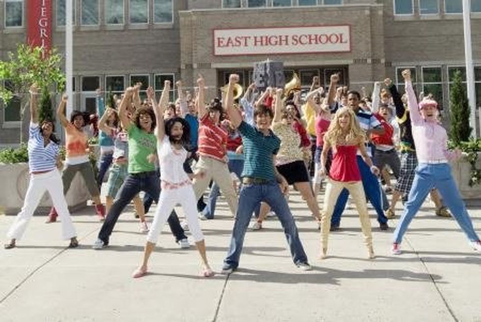 No high school is not anything like it is in High School Musical (although that would be totally awesome). In my 4 years of high school, not once did anyone break out into a song or dance number. And how does everyone seem to know all the words and choreography to this supposedly "random" number.