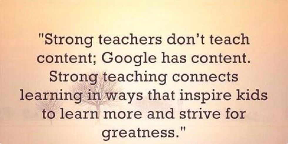 Based off my experiences, the best teachers teach you things more than just the things in that outlined curriculum hiding in their binder under the desks. They prepare you for the next step through guidance and support, yet they're always fair, meaning they give you what you give them.