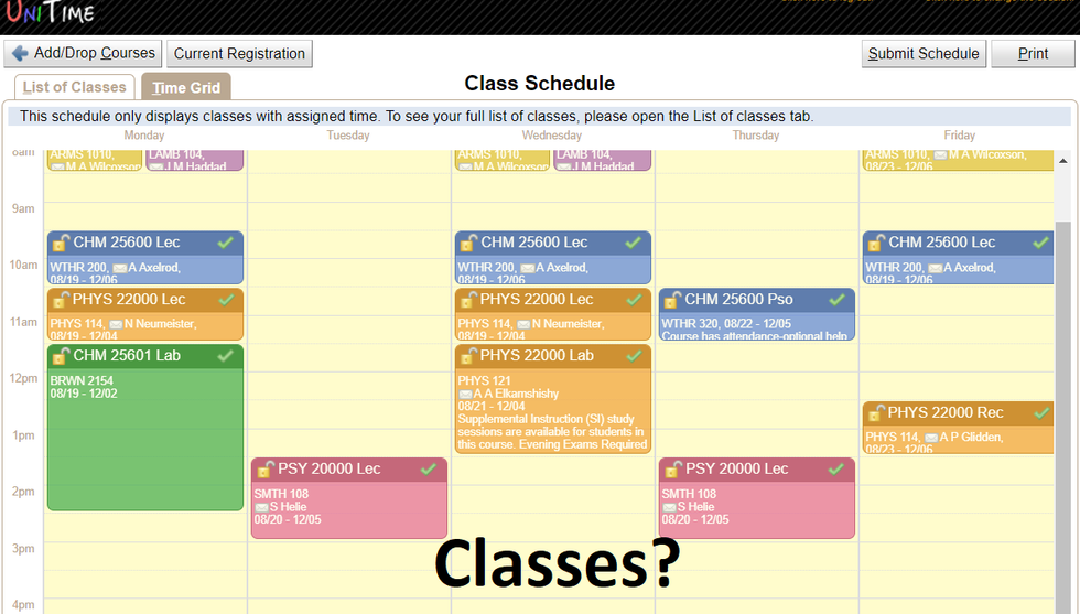 Posted a picture of their schedule online and said "Classes?"