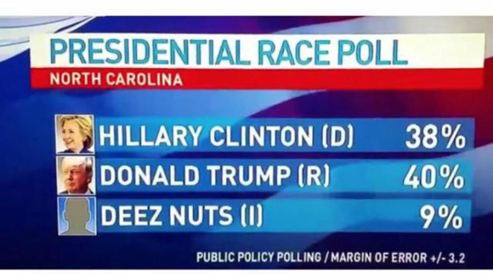 15. Deez Nuts polls at 9% in a hypothetical race against Hillary Clinton and Donald Trump.
