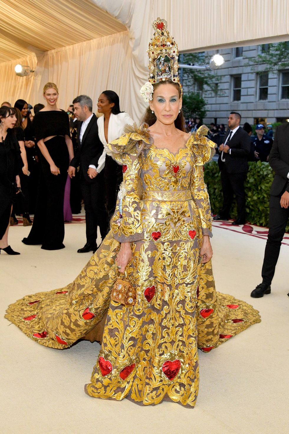 Sarah Jessica Parker in Dolce & Gabbana Alta Moda, Jennifer Fisher jewelry and Fred Leighton jewelry.
