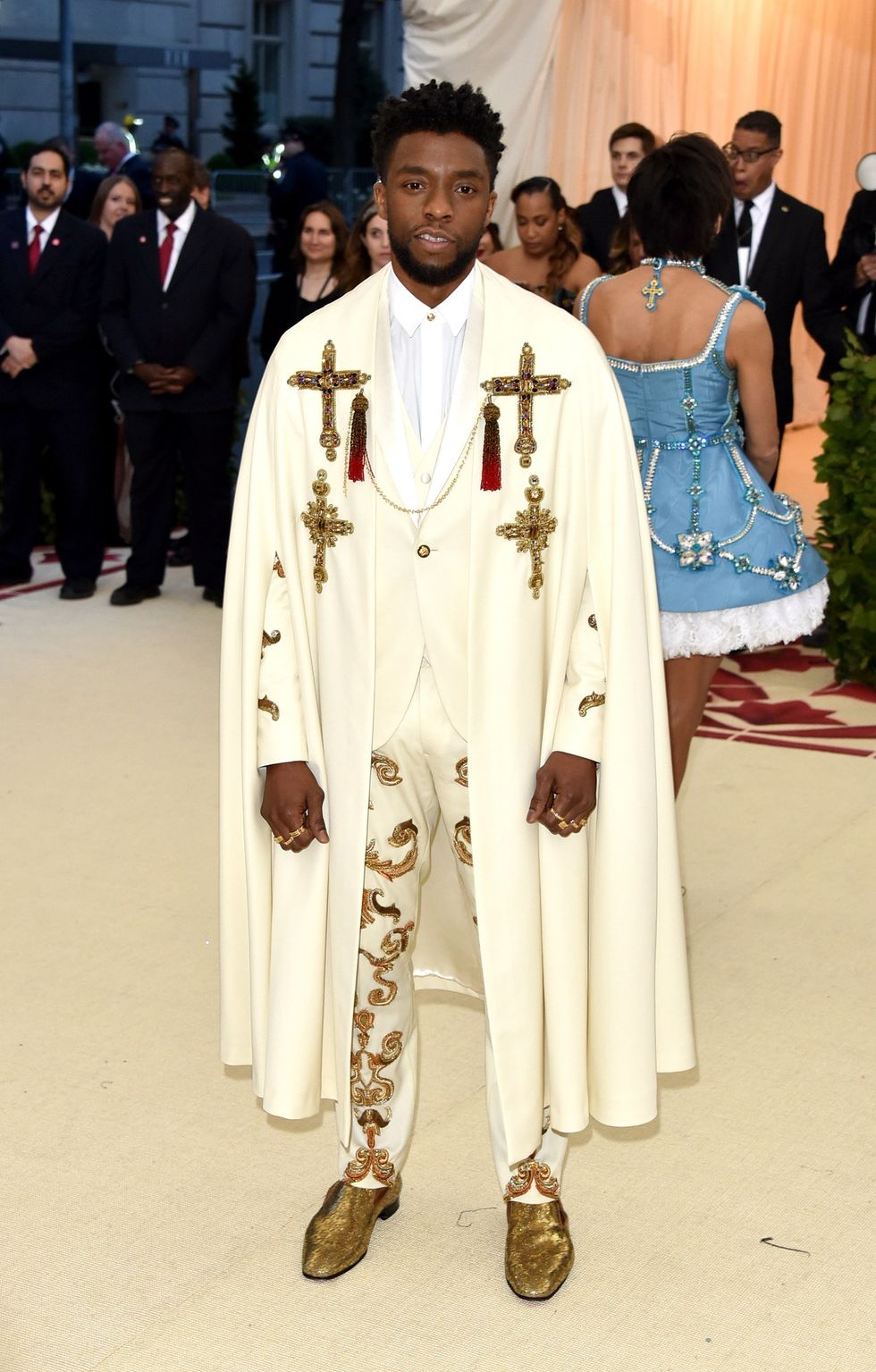 Chadwick Boseman in Versace and Christian Louboutin shoes.