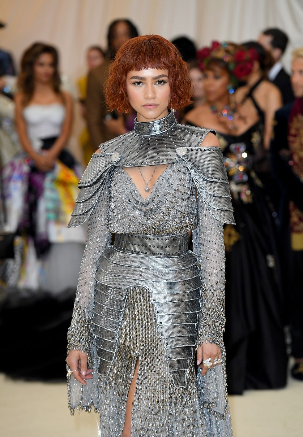 Zendaya in Atelier Versace, Tiffany & Co. jewelry, and Jimmy Choo shoes.