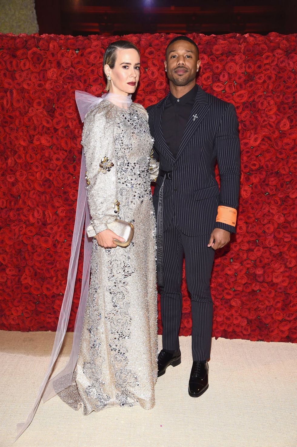 Sarah Paulson in Prada and Michael B. Jordan in Off-White.