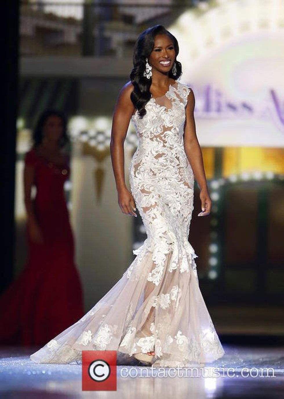While the swimsuit competition is not my favorite category throughout the night, I still had a favorite contestant for this category. I particularly liked this contestant because I personally think black swimsuits tend to have the most class and taste. I also really liked this particular suit because of its design. It's a very simple bikini with a touch of its own personality by the added strip of fabric underneath the bust area. For those reasons, I chose Miss Colorado, Kelly Johnson, as my favorite contestant in the swimsuit competition.