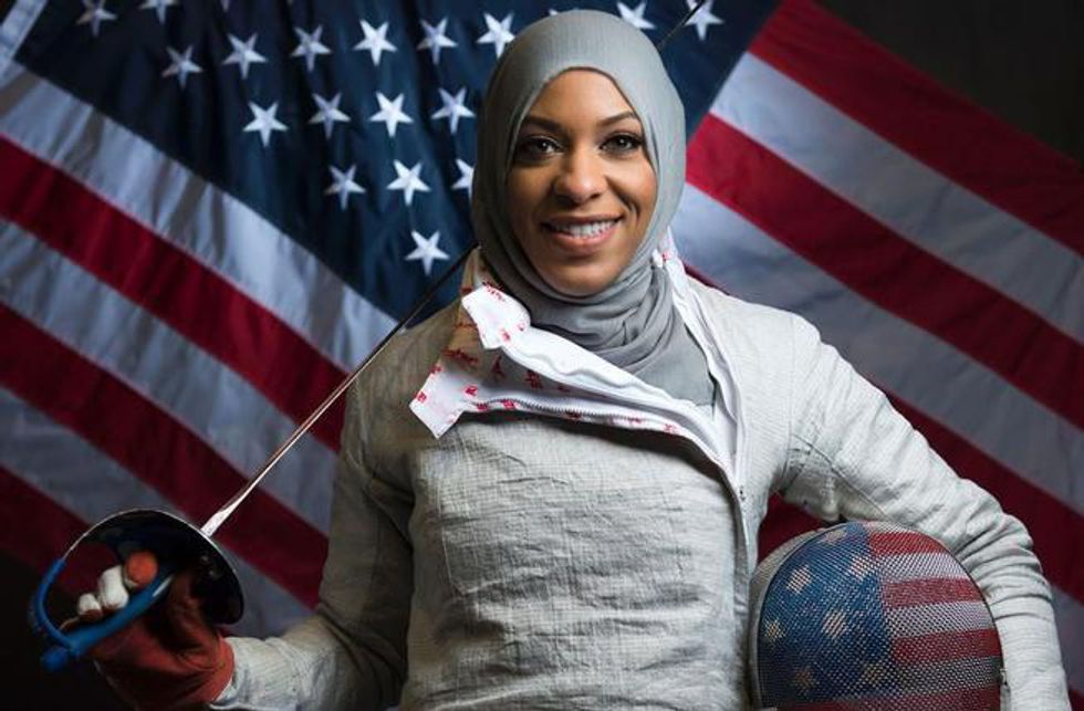 Muhammad was the first American Muslim woman to wear a hijab while representing the United States team. On making history, she said, “I realize that this moment is bigger than me. Anyone who has paid attention to the news at all would realize the importance of having a Muslim woman on Team USA. It’s not just any team, it’s the United States of America. It’s just been a really remarkable experience for me.” Muhammad earned a bronze medal with her teammates in the women's team sabre.