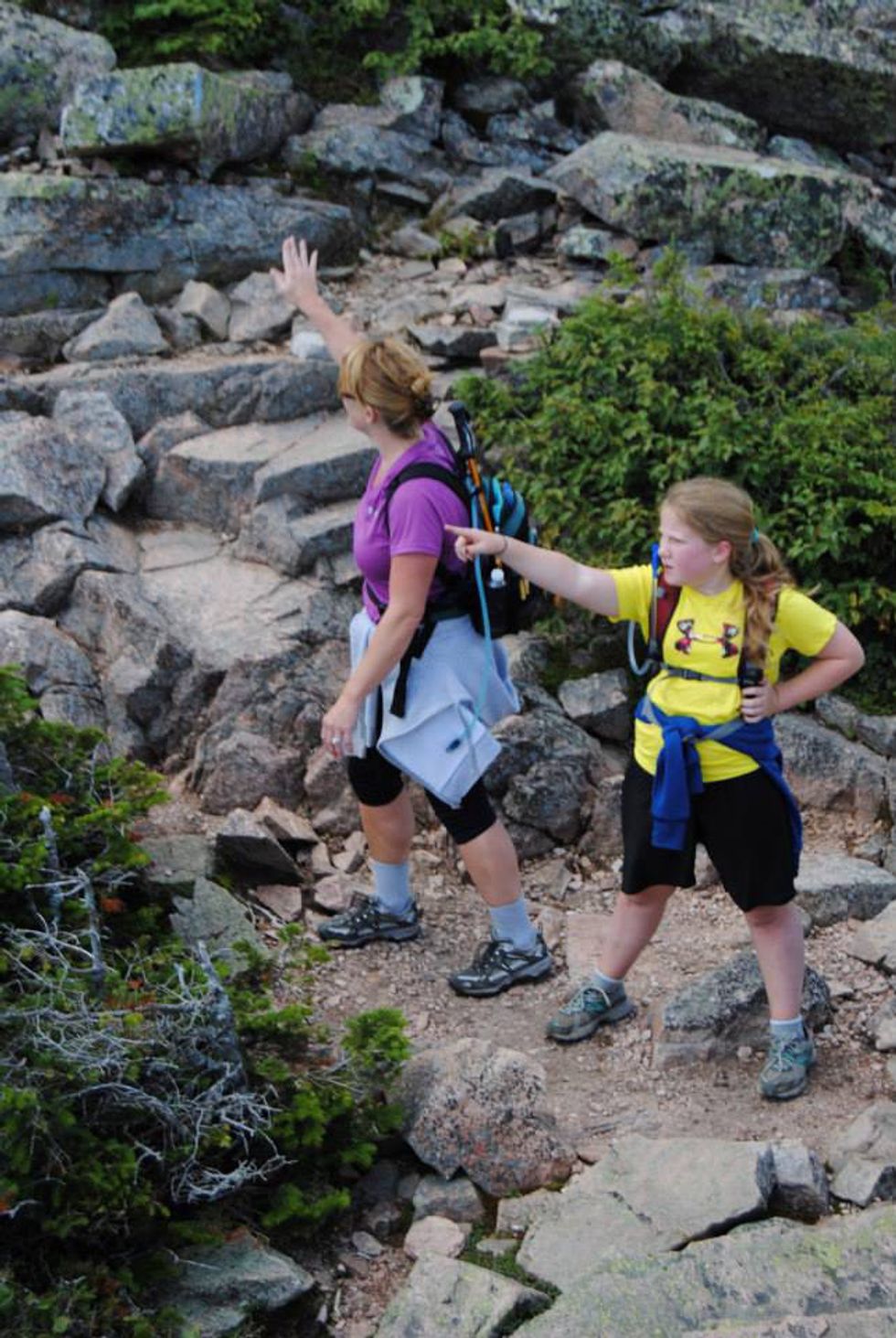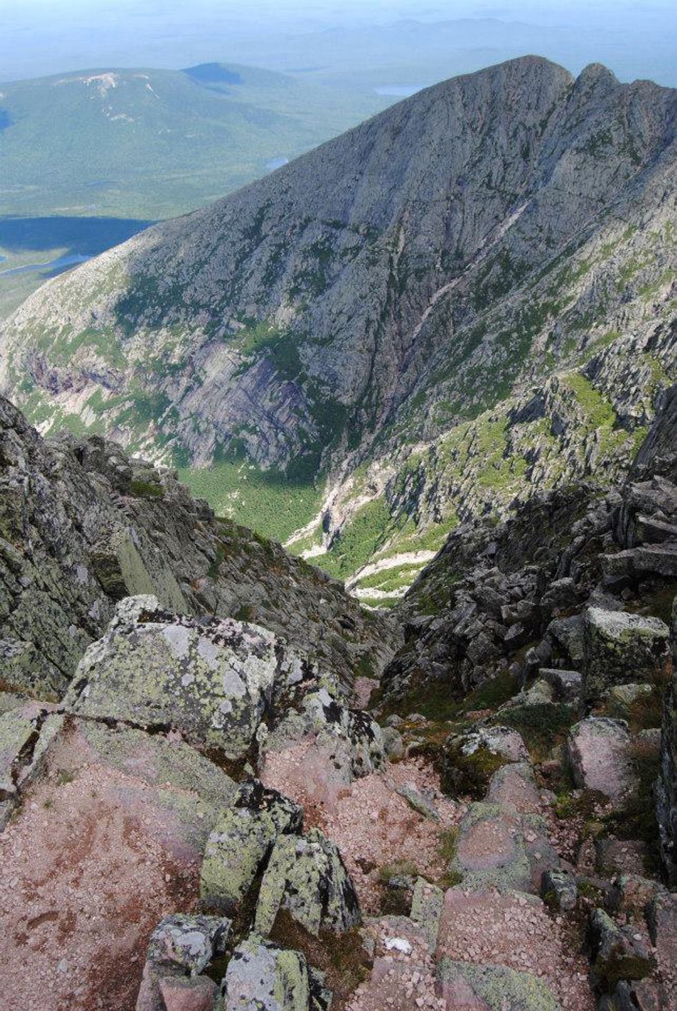 My favorite trail on Katahdin is the Cathedral Trail. This 1.7 mile hike is the shortest way to Baxter Peak, and it's also the most challenging. There are no rungs or ladders on this trail and it's almost completely hand-over-foot climbing. I'm constantly muttering "Four points of contact..." during this hike. Each of the three cathedrals offers a risky overlook adventure and a 360 degree view of what seems like all of Maine. Definitely a Kodak moment. Also, as amazing as the hike is, it's relieving knowing when you conquer each cathedral. It's a long, strenuous, amazing climb.