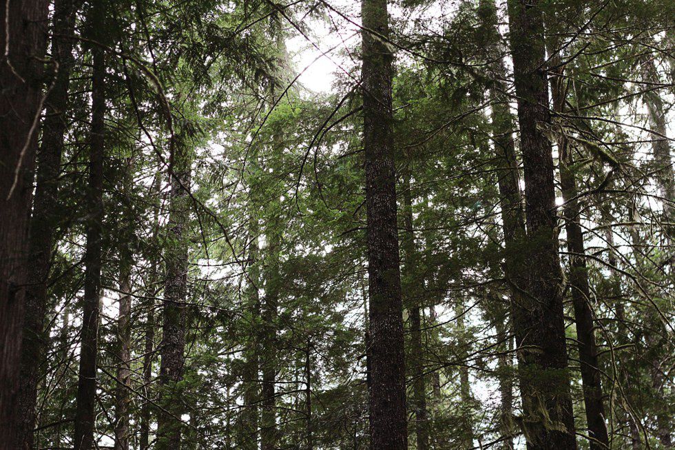 The trees are towering. Did you know that a ring of the tree represents one year? The rings closest to the bark are the youngest.