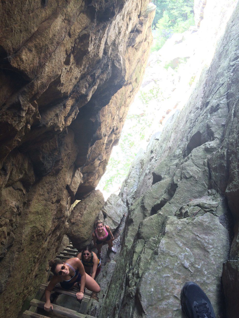 The difficulty to most hikers on this trail is about an eight out of ten. This trail requires you to climb up and down ladders while squeeze through rock caves.