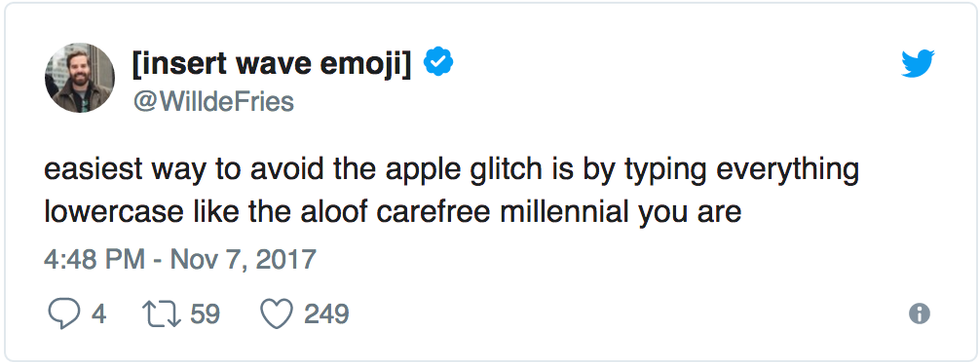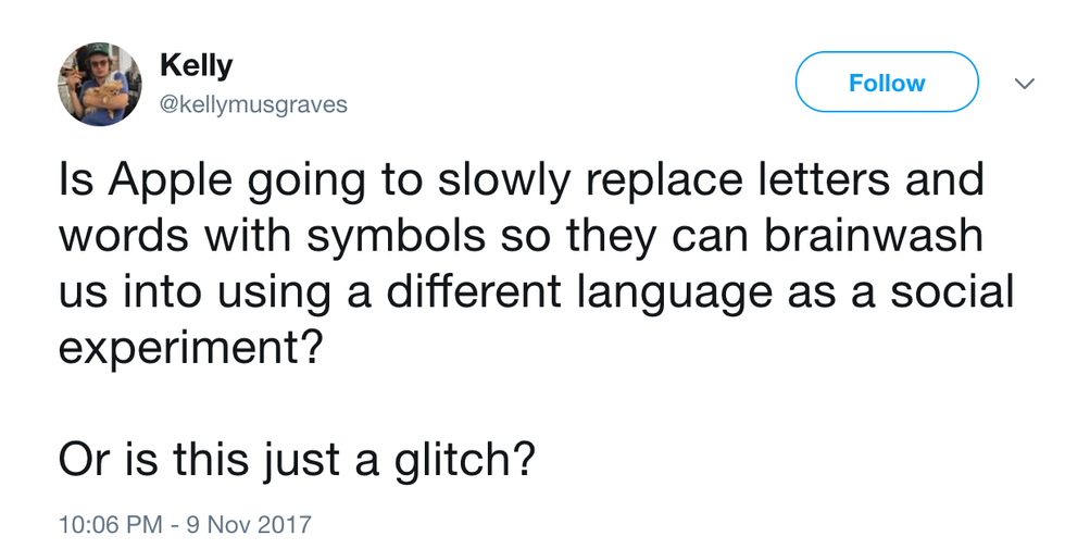 iOS 11.1 was released last week and while we were all ~super~ excited about new emojis, the keyboard glitch with the letter "I" was not so fun. Even if you don't have an iPhone or didn't update your phone to experience this glitch, I'm sure you heard about it. When it first started I thought I was the only one having the issue, but I was not alone. Thankfully, Apple has released a fix for this bug and you can update your phone to finally get rid of the annoying A[?] or ![?]