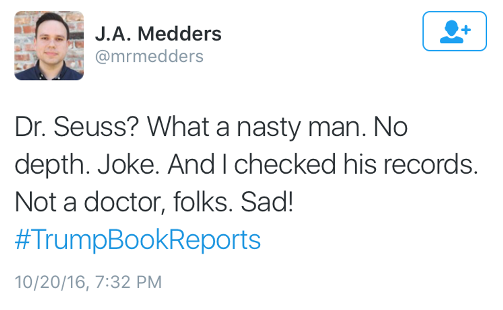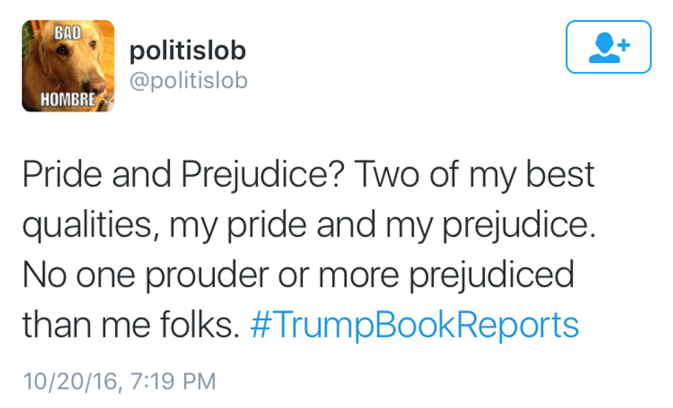 One thing that I'm able to look forward to post debates are the Trump memes and the Internet has blessed my nerdy-literature-loving self with Trump Book Reports. Here are my 14 favorite Trump Book Report tweets.