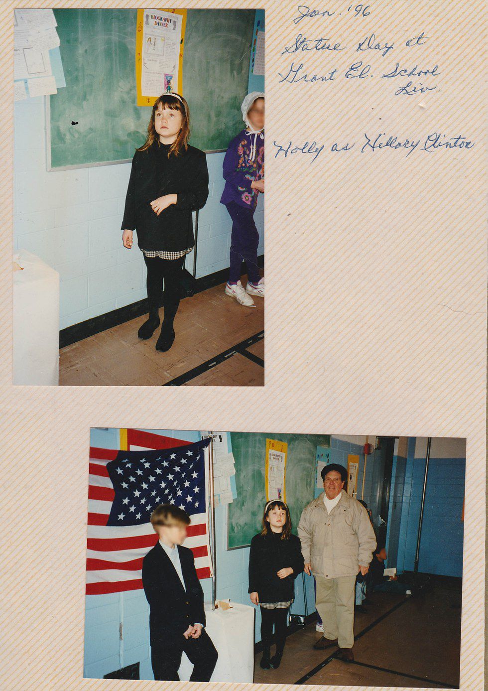 When I was eight years old I had a class project to write a report and dress up as my hero. My hero at that time was First Lady Hillary Clinton. Both of my parents voted for President Clinton despite my dad being a life-long republican. He was the first president I was aware of and him and the First Lady sparked my life-long interest in politics. I viewed Hillary Clinton with awe; she was strong, smart, and did very important things. When I would ask my parents if I could be in politics one day they would laugh and say that I was too honest to be a politician before telling me that I could be anything.