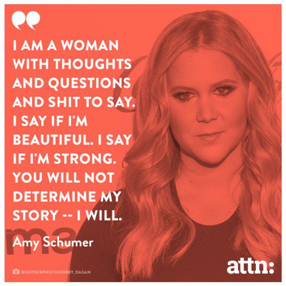 The American stand-up comedian, writer, actress, and producer who is also a creator, co-producer, co-writer, and star. While also being one of the hilarious humans on the planet, Schumer was also named one of Time magazine's 100 most influential people and also named onto Barbara Waleters' 10 Most fascinating People list. She's received praise for the feminism of her comedy and her clever ability to address social issues. In 2015, she began creating skits in Inside Amy Schumer that involved several ideas regarding sex, feminism, and rape culture. Girl power, ladies.