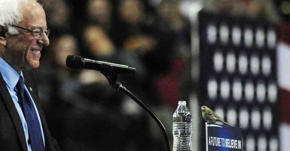 The most recent event that illustrates the Sanders vs. Clinton lopsided likability with Democrats occurred last Friday morning at a Bernie Sanders rally in Portland, Oregon. In the middle of his speech, a small bird appeared to be flying around in the stadium and landed on the stage. The minute that Sanders noticed the bird, it flew over and perched itself on his podium. The video speaks for itself: