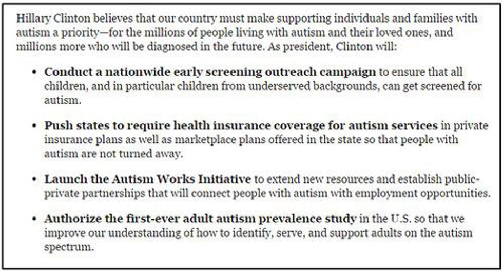 Somewhat surprisingly (and perhaps the reason most people aren't talking about it) some people didn't even know Hillary had an autism plan.