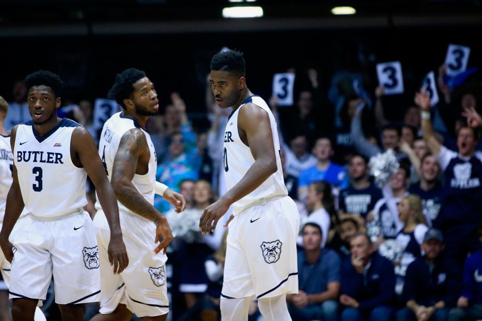 I will never forget the feeling I had when I went to my first Butler basketball game. As I approached the doors, I was nervous about getting a seat in Dawg Pound and knowing the War Song. However, when I walked through the doors, as I had once before, I felt the excitement build up as I weaved through the crowd to get to my seat. Once I reached my seat, I was amazed by the beauty and architectural design of Hinkle Fieldhouse. Then, the jumbotron played the welcome message which sent chills all throughout my body (and still does, even though I've been to over 20 games now). Right after the welcome message came the video that introduced the players, and then the players emerged from the locker room as everyone starts singing the Butler War Song.