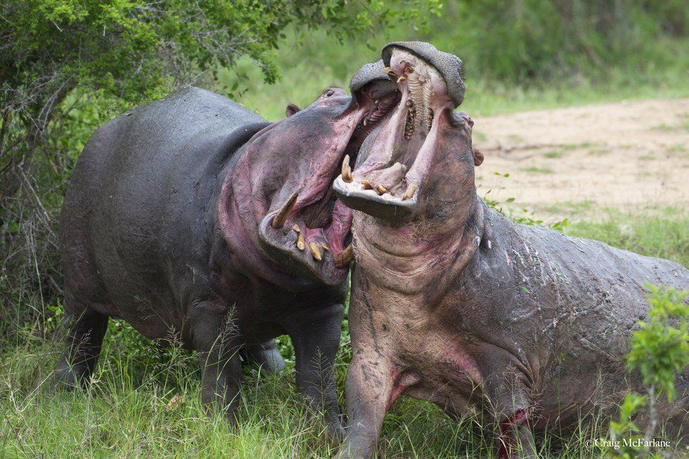 Much like almost any other animal, hippopotamuses are territorial and will attack if they feel threatened, or at any other time because they are so unpredictable. Once attacked, there is a near impossible possibility of surviving, for hippopotamuses can weigh up to more than 3,300 pounds, have impressive agility in or out of water, and bring two 20 inch tusks to the fight. In comparison, a lion only has 2.7 inch canines. With a bite force of about 1800 pounds per square inch, 20 inch tusks, and lethal aggression, the hippopotamus is almost invincible and unescapable.