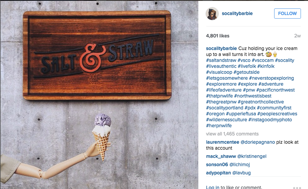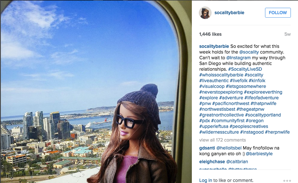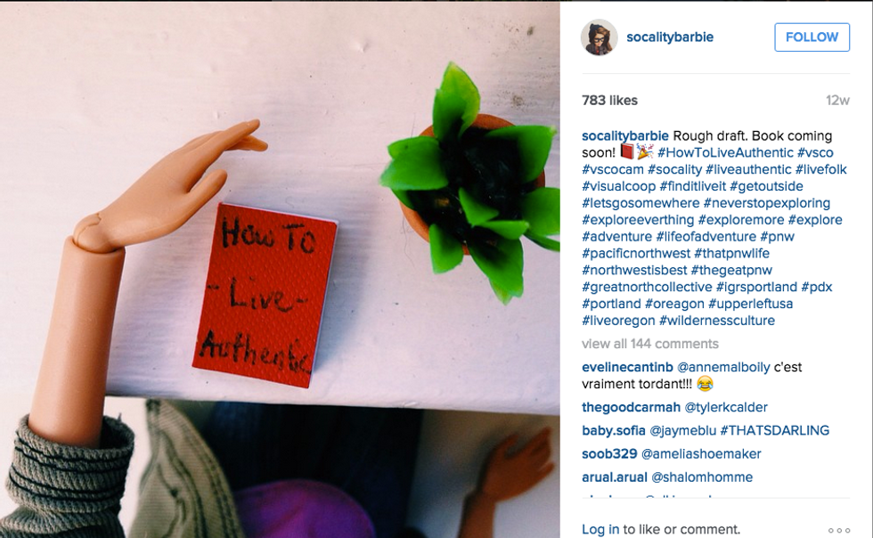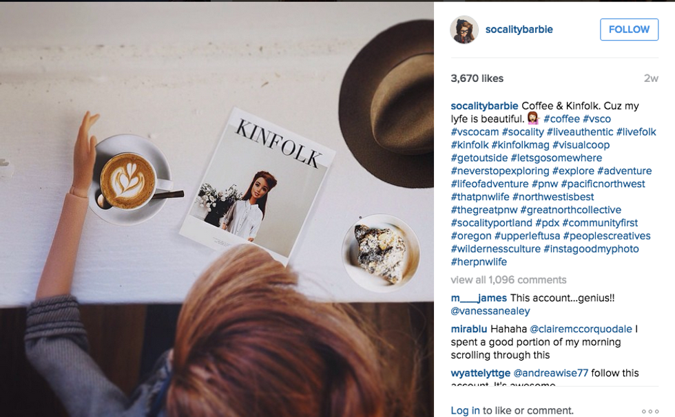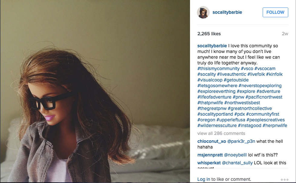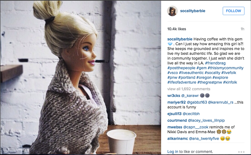 Many people use social media as a way to connect with their friends and family, but recently social networking sites have developed their own sub-communities. In this case Barbie is part of the travel and hipster communities. She's a fan of the outdoorsy, nature-inspired shots or the "so happy to be alive" posts.