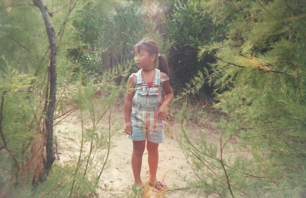 (This is my dad’s friend, my babysitter’s daughter, my brother and me. We had played outside allsummer long so we had turned a lovely brown shade)