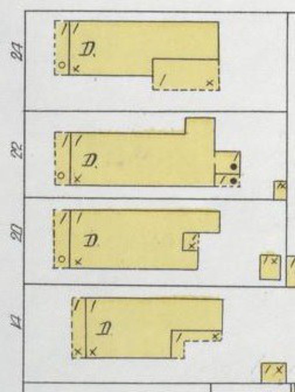 The three previous houses as depicted in the 1900 Sanborn Fire Insure Map