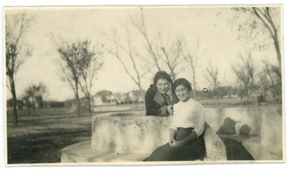 4. Women sitting in the "spoonholder" in the North Oval- 1914