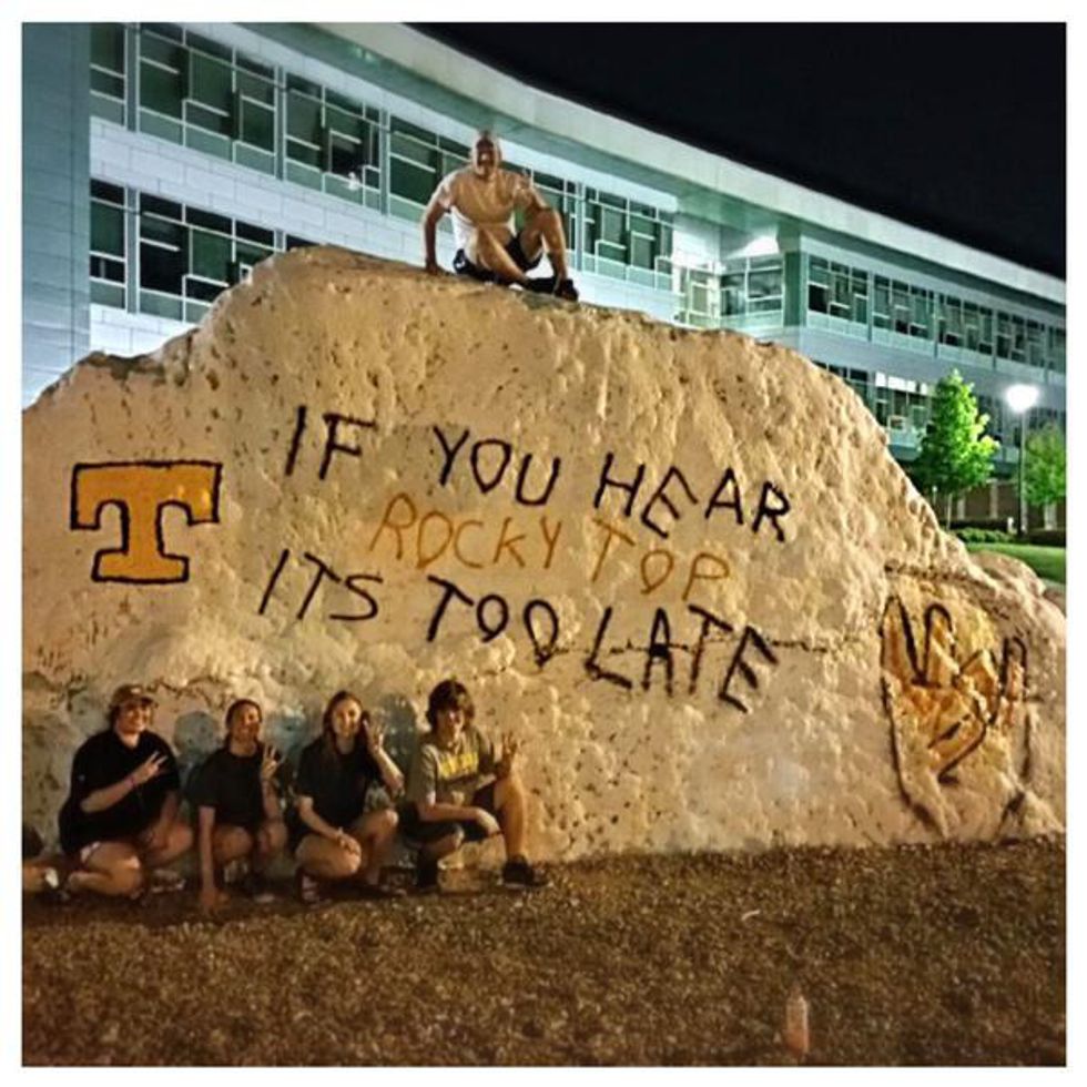 Whether or not you've crossed painting the Rock off of your bucket list, every Vol appreciates the longstanding tradition. It's obvious that this "big rock on campus" has seen lots of big orange love over the past decades. From Drake references, to game day celebrations, to marriage proposals, to Lil Jon's face, Vol fans have kept the heart and culture of this tradition alive, and won't let a little heat stop them from covering the Rock with tons more paint. Rock on UT Fans!