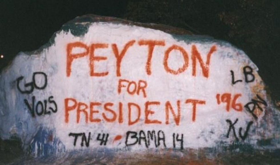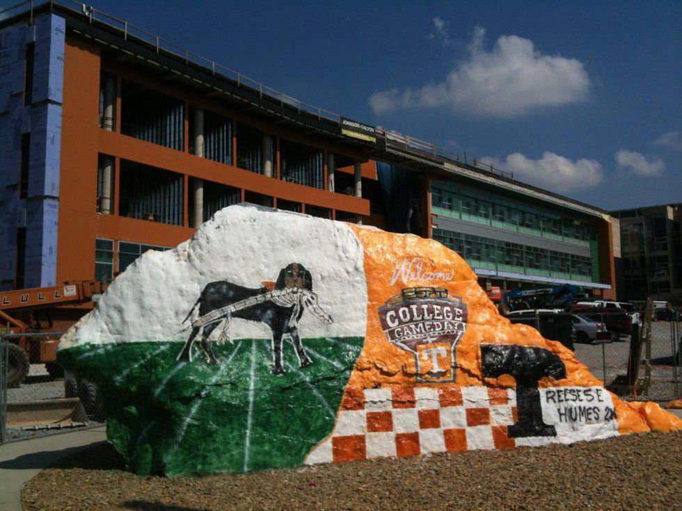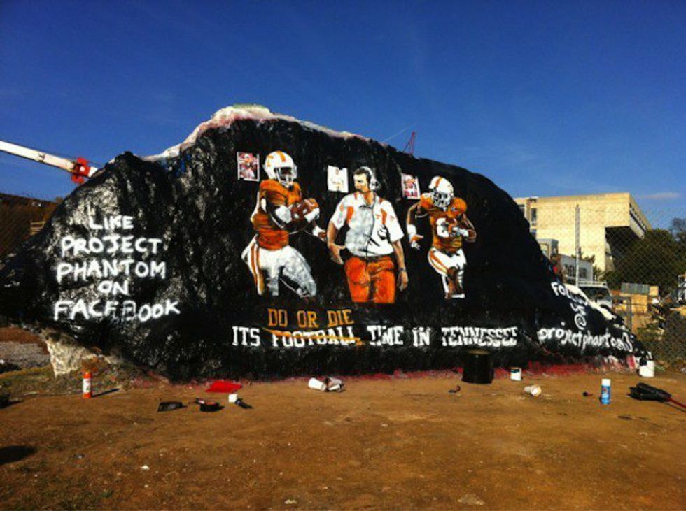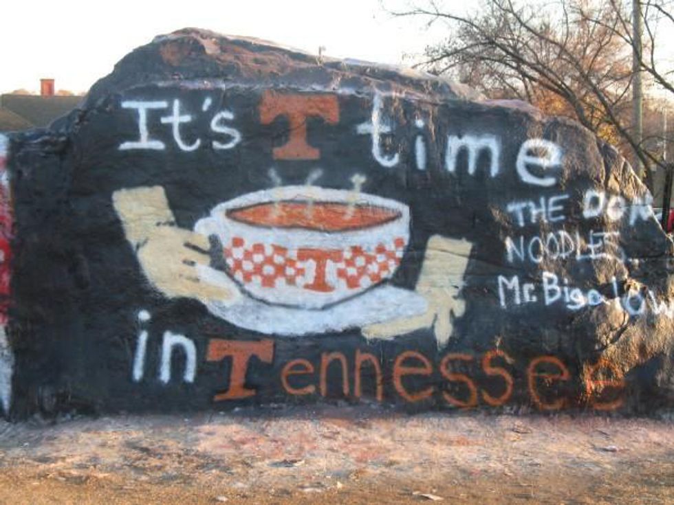 Since the 1960's, students and fans of the University of Tennessee have preserved one especially creative tradition: painting the Rock. This esteemed canvas of the campus has built up thousands of layers of paint over time, which is estimated to weigh over 98 tons in total! This past week, due to heat levels in Knoxville, around 2 to 3 tons of paint slid off the Rock according to WBIR News. That's 2 to 3 tons of UT history! The University of Tennessee Facebook account responded to concerned Vol fans and dedicated Rock painters that they are in possession of the paint and plan to preserve the historical art in some way (Vol fans everywhere breathe a sigh of relief).