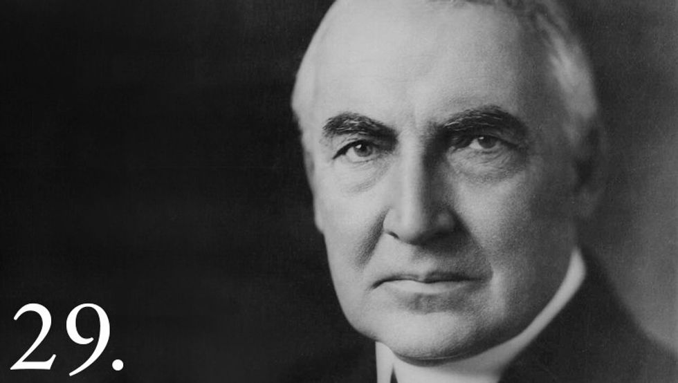 That's Warren G. Harding (1865-1923), the 29th President of the United States. You probably haven't heard of him. If it weren't for the fact that I spent hours pouring over Judith St. George's So You Want to Be President as a kid to the point of memorization, I probably wouldn't have either. Here's how George describes him: