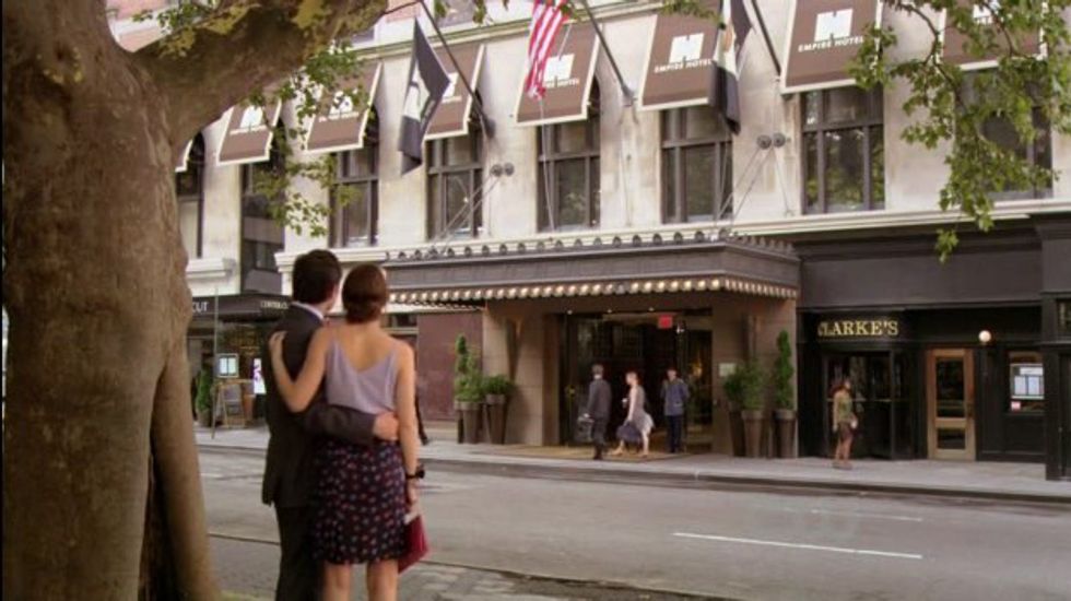 Chuck and Blair stand outside the Empire Hotel on the UWS.