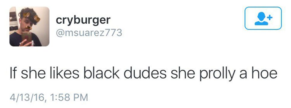 Because only hoes can be attracted to an entire race. Non-hoe girls cannot like "black dudes".