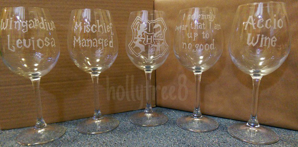 For the wine-and-spell connoisseur in your life, these wine glasses featuring some fan-favorite phrases from the iconic HP series is a great gift for anybody who loves both wine and Harry.