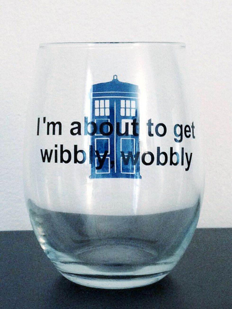 For the time-travelling drinker, this Dr. Who inspired stemless wine glass is the perfect gift for a cocktail on a quiet night to get "wibbly wobbly" with a Dr. Who marathon.