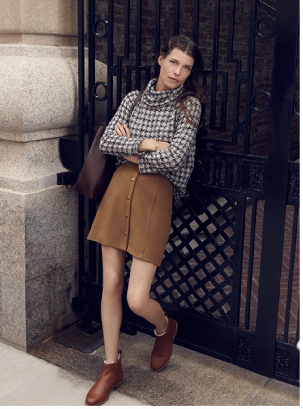 The front-snap skirt is a hot commodity right now and a perfect option for Thanksgiving. Pair it with a snuggly sweater and boots! The snaps are great for when you're regretting that extra slice of pie.