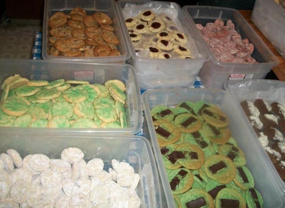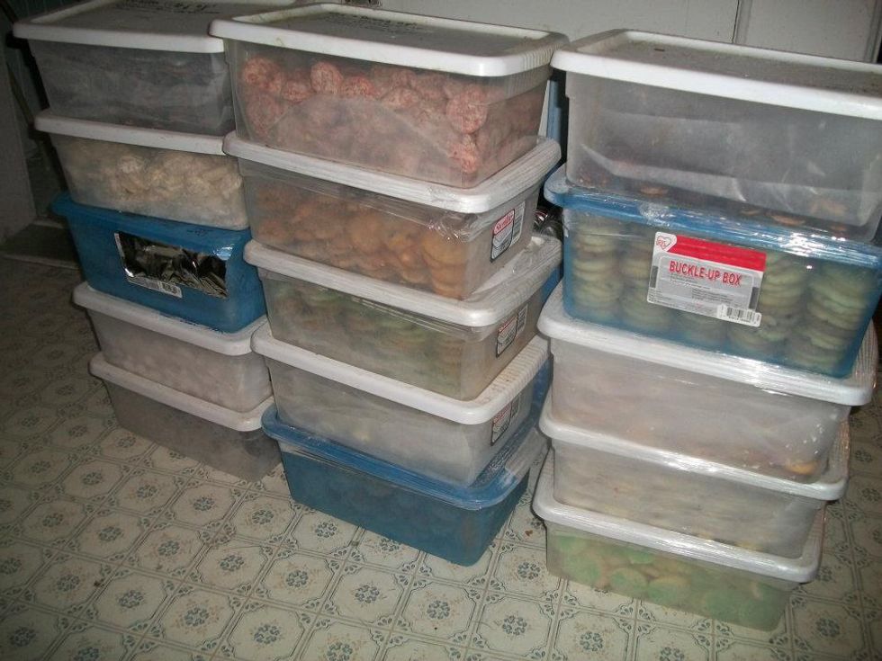 Well it helps when you have a kitchen stove that is able to hold five cookie sheets at once. It also helps if you have a warranty on your mixer. In one cookie season we went through four Kitchen Aid Mixers. My dad got fed up and bought an industrial mixer to fix the problem. There is always counter space if you have the right stacking and Jenga like skills. So the kitchen size was never a problem. When referring to keeping the cookies fresh, that was easy. We would use large totes, seran wrap, and wax paper. All of the cookies would go into the totes with layers between, the lid would be put on then it would be wrapped and labeled. Once that was done they would be put into the freezer. There was a freezer dedicated to the cookie season.
