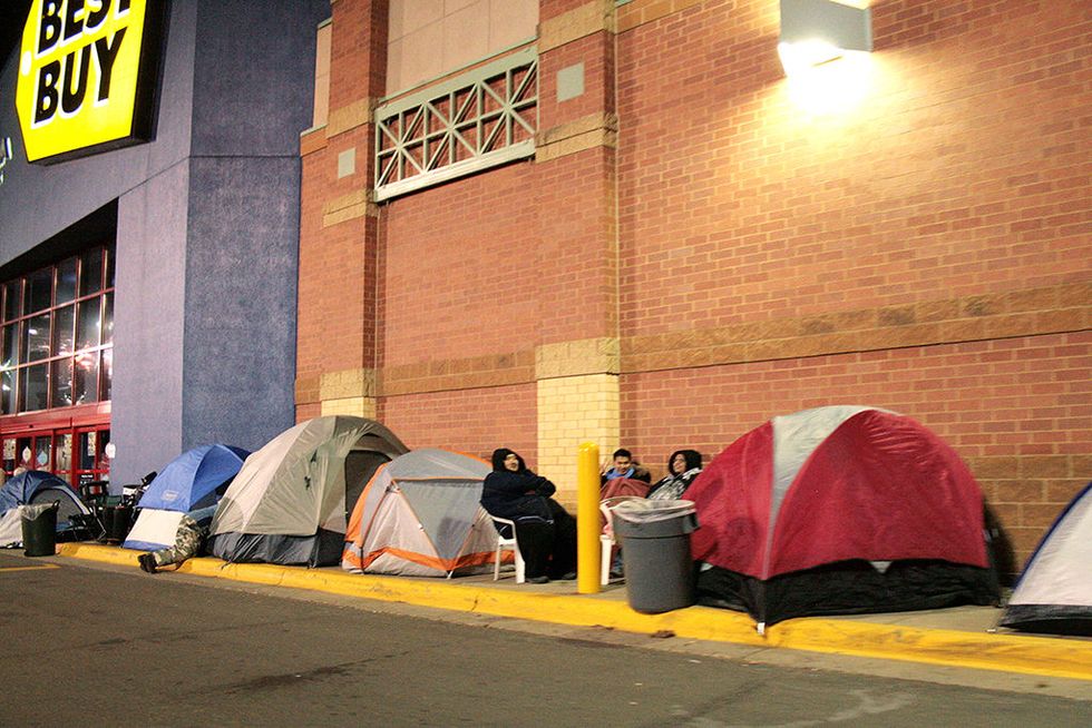 These people are dedicated enough to their items that they camp out in front of the store, even if it is just for a cheap TV.