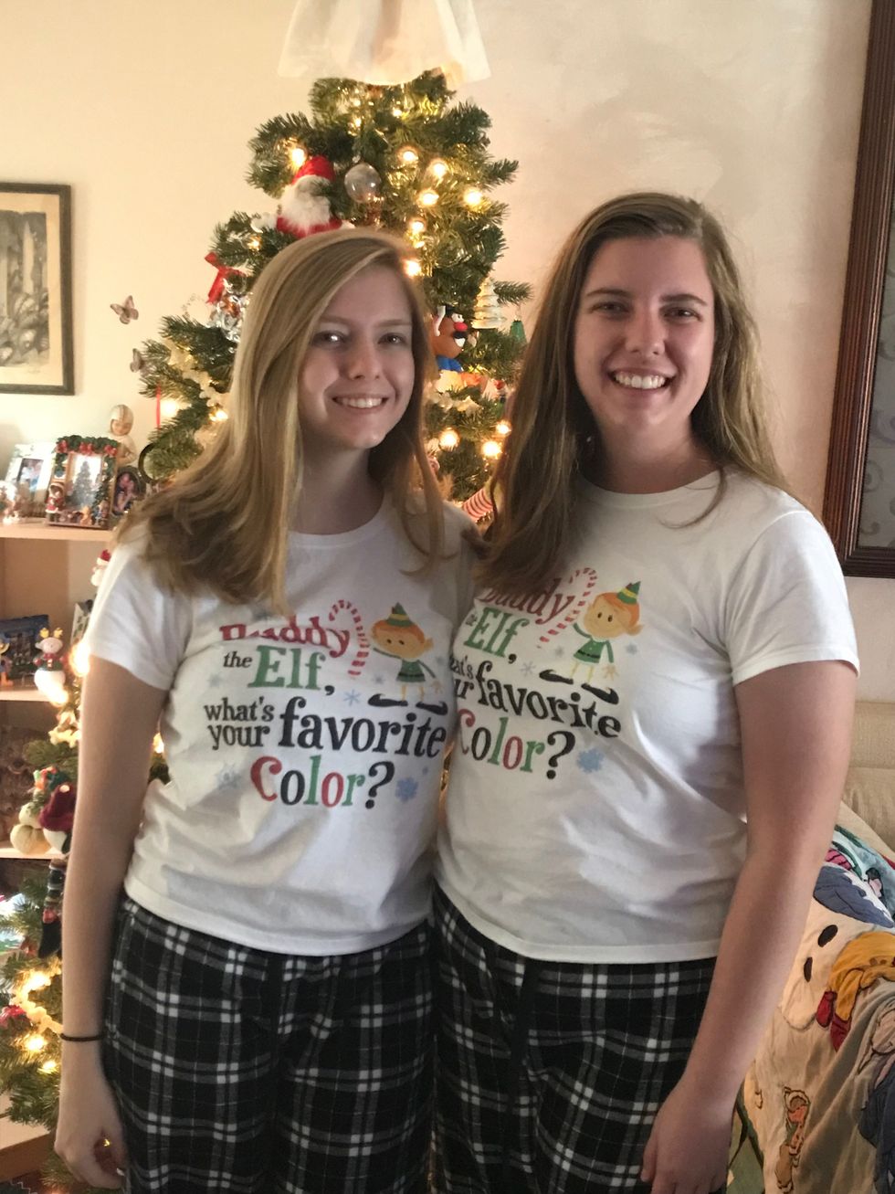 So after we open that one gift under the tree, our mom makes us hide in the living room while she lays out our matching sister pajamas for our night before Christmas slumber. Finding the jammies on our beds is so much fun for my sister and me, and I don't know about you but I will wear Christmas jammies all year long.